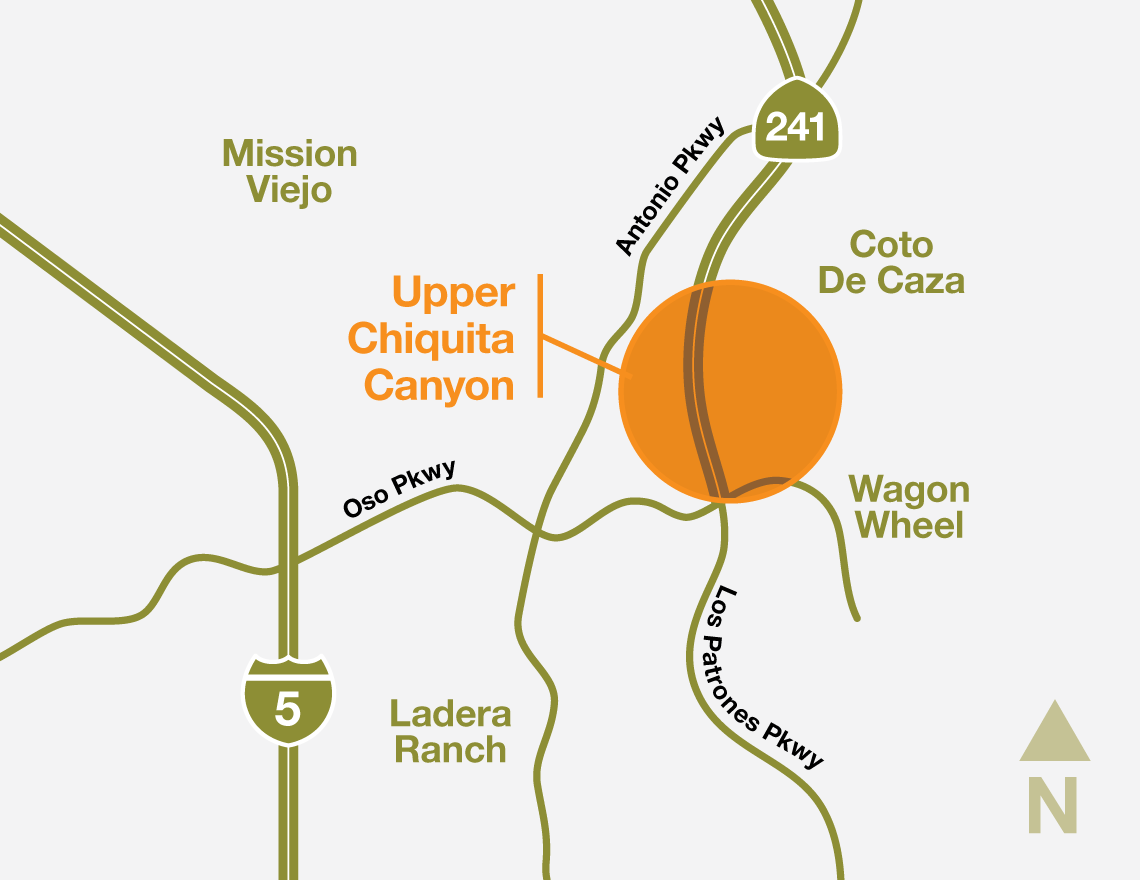Located in Rancho Santa Margarita, the land at Upper Chiquita Canyon was previously used for agriculture and cattle grazing and was zoned for residential and golf course development.
